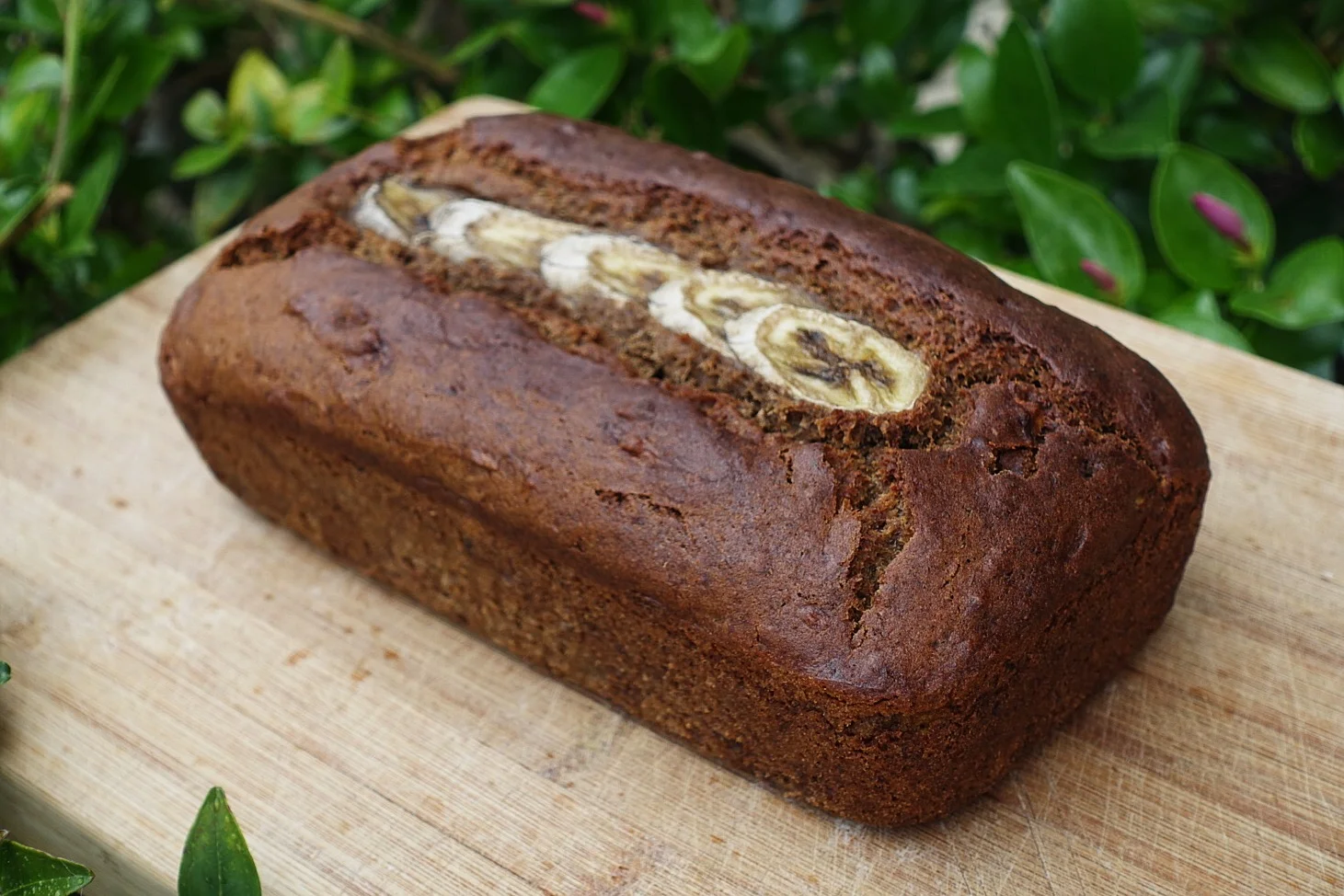 - Place the tin in the oven and bake for approximately 30-40 minutes, until the top is dark brown and a skewer comes out almost clean. It is better to remove it from the oven sooner rather than later as a moist banana bread is always more preferable than a dry one.