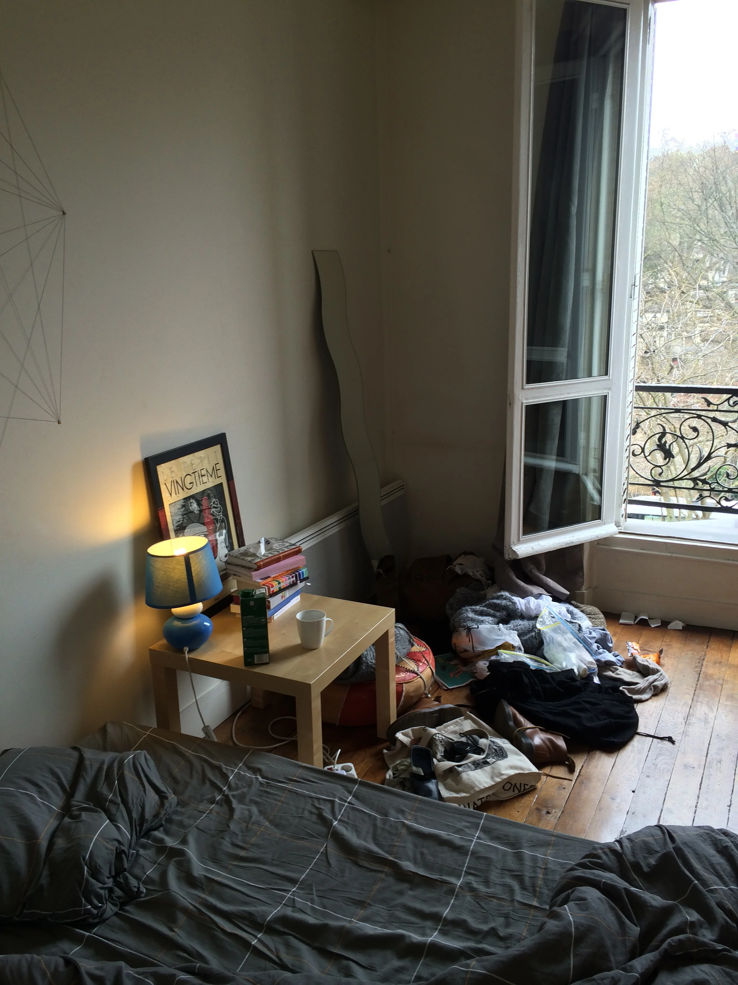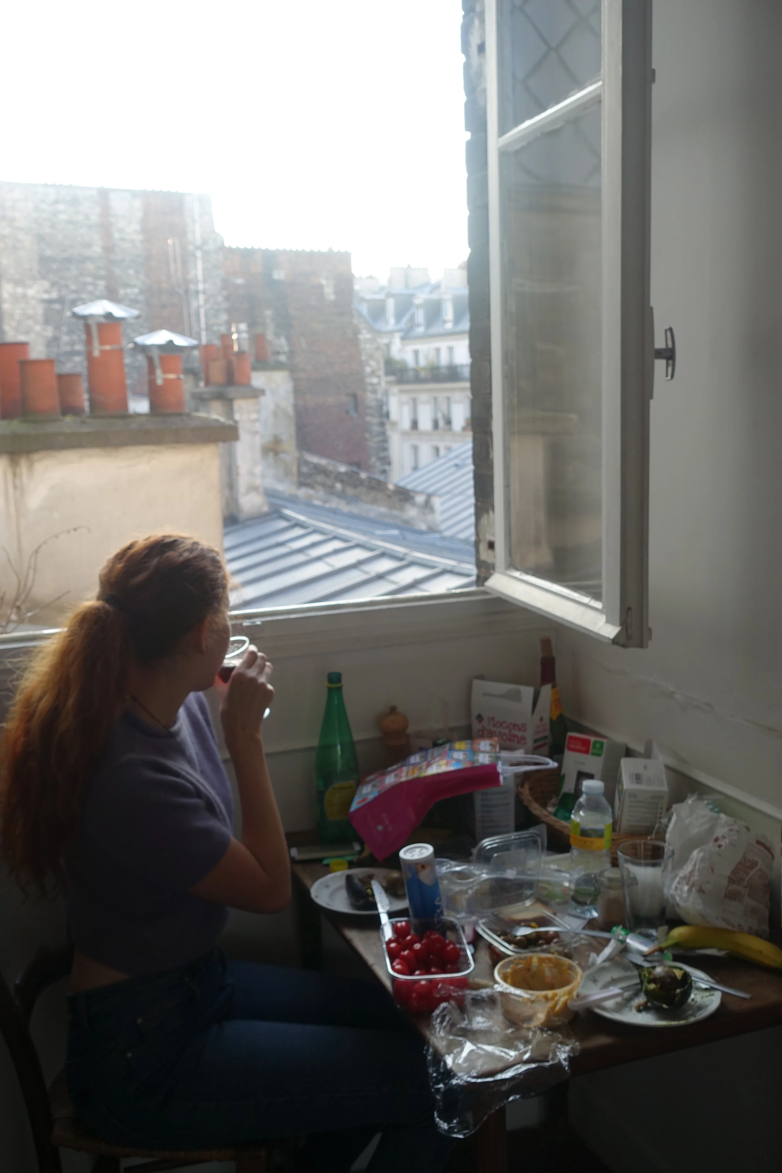 Our next nest was a proper Parisian dream - a fifth-floor loft in Montmartre, perched atop a spiral staircase, with a box of dog-earred French records, and a teeny kitchen looking out over the endless horizon of rooftops and chimneys. We would dash down to the supermarket across the street and stock up on supplies each evening - flocons d'avoine, sparkling lemon water, avocados, and pots of apple puree - planning our feast as we tiptoed down the staircase. We stayed in our little loft for days, emerging only for supplies. Jamie XX's In Colour and Majid Jordan's U were whispering over the soundsystem as we read about Patti Smith's life in New York and a material that can capture stardust, and when we grew tired of reading, watched Woody Allen films in French.