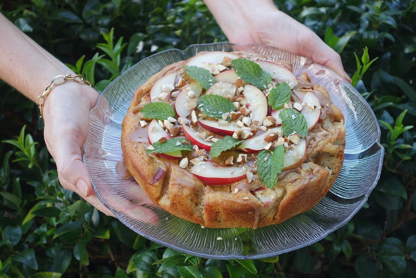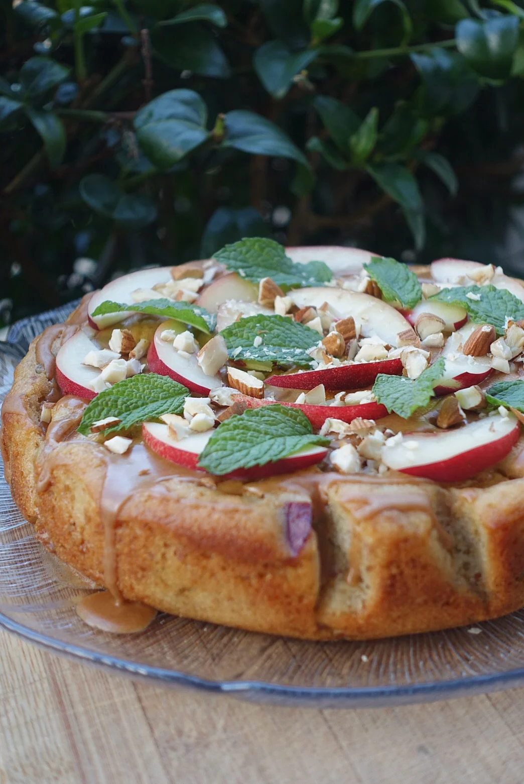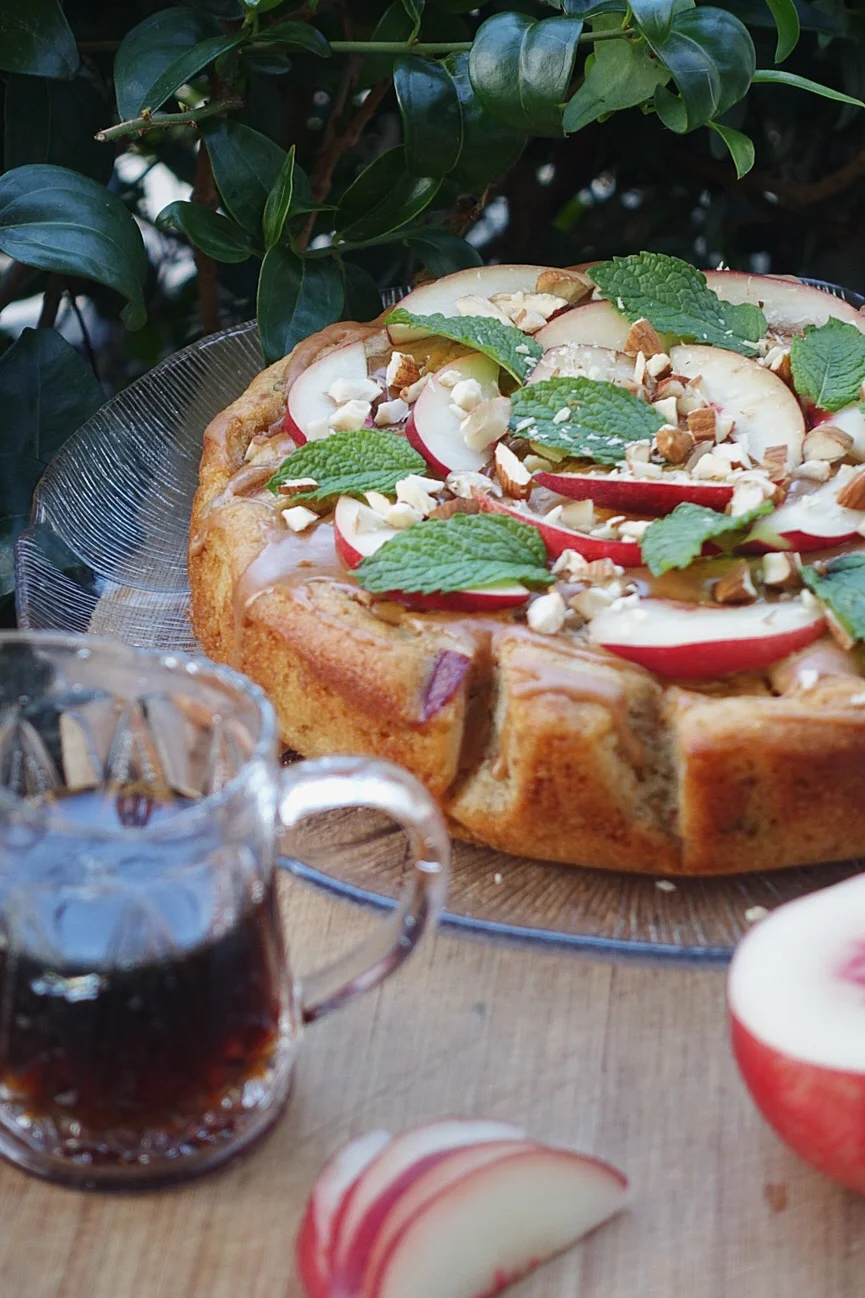 Fresh Mint, Almond and Nectarine Cake with Maple Cinnamon Glaze