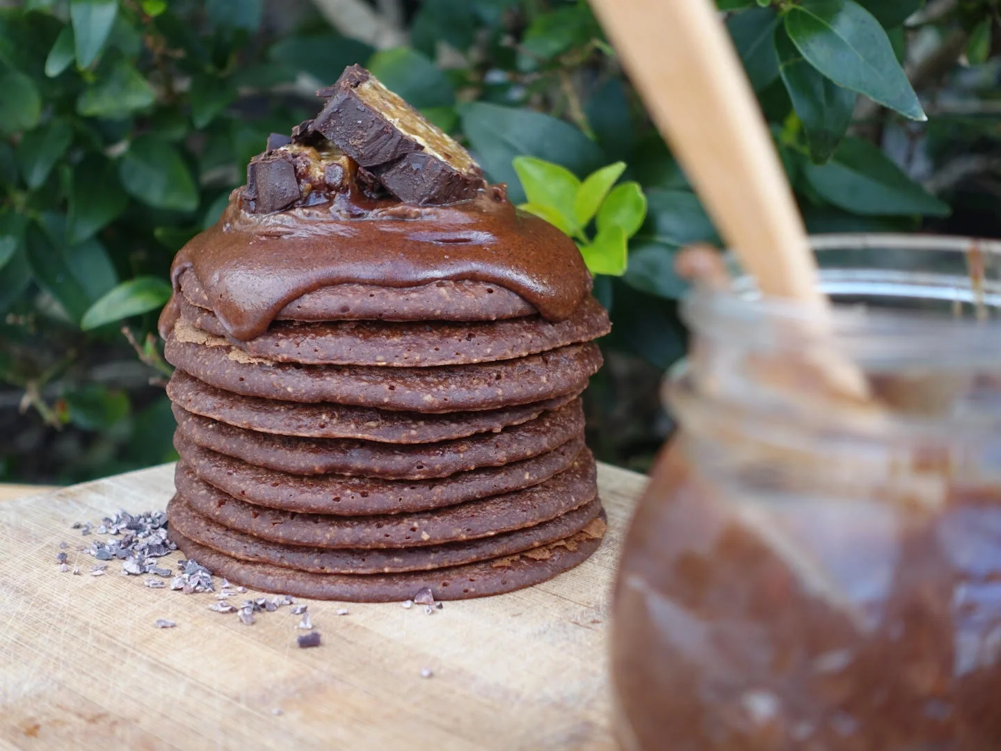Freshly whipped chocolate ice-cream, doused in a chocolate hazelnut butter sauce and scattered with dark chocolate chunks and rose petals. Raw, vegan, and unlikely to send you spiralling into a food coma (unlike its godly appearance may lead you to believe).